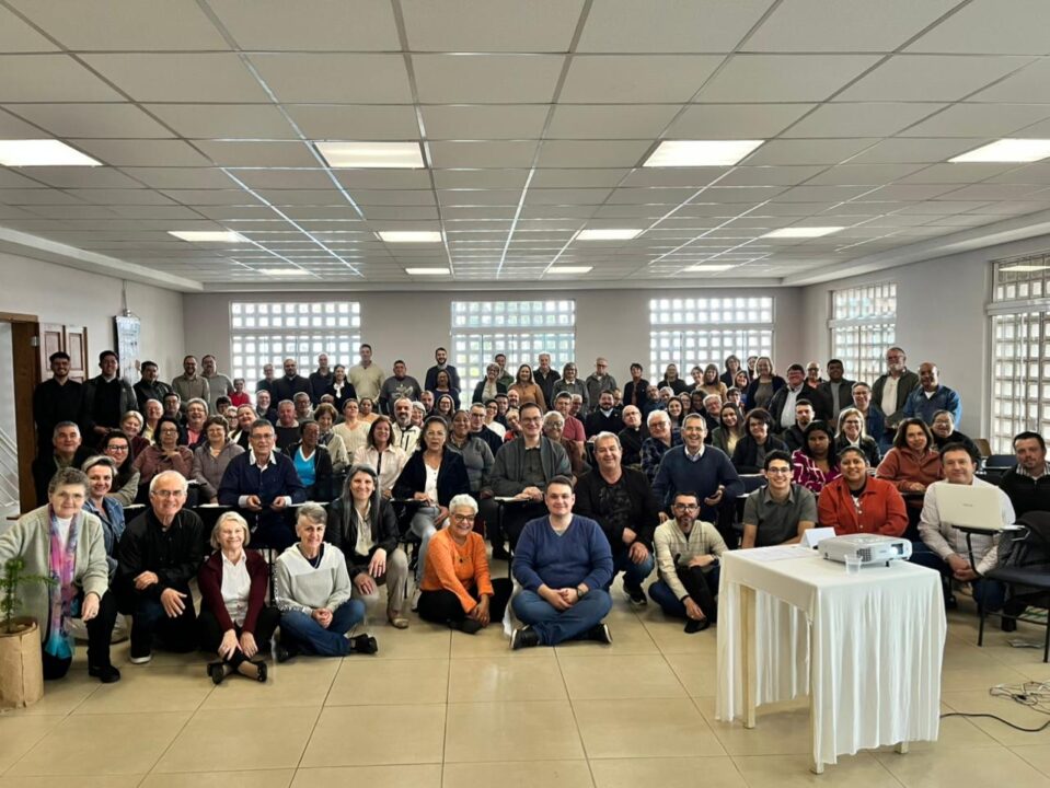 A Diocese de Lages realizou, no sábado, 18 de outubro, a 5ª sessão da 38ª Assembleia Diocesana de Pastoral, na Paróquia Nossa Senhora das Graças. O encontro contou com a participação de cerca de 120 pessoas, entre elas o bispo Dom Guilherme, (que em razão do falecimento de um ente querido, precisou sair após a abertura), presbíteros, irmãs religiosas, lideranças de pastorais e representantes das paróquias de toda a Diocese.