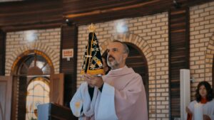 Acompanhados pelo pároco, Pe. Thiago, e pelos padres Fernando e Ivan, os paroquianos chegaram ao santuário por volta das 9h, em três ônibus, testemunhando a devoção do povo de Deus. O grupo foi acolhido com alegria pela Pastoral da Acolhida e pelo missionário redentorista Pe. Sergio Lima, C.Ss.R., iniciando o dia com um momento de confraternização e partilha.