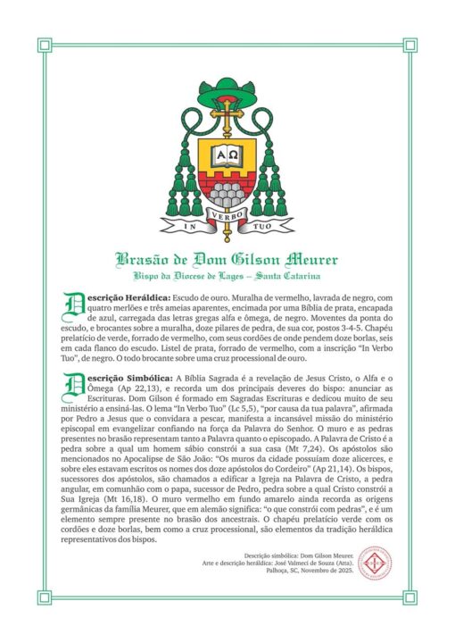 A missão de ser sucessor dos Apóstolos é uma grande obra espiritual, que exige dedicação e um espírito de serviço. Como ele costumava dizer aos seminaristas, se Jesus convidou os Apóstolos a irem a Jerusalém, a sua Jerusalém é aqui, em Lages. Ele deseja ser testemunha de Jesus Cristo, do seu sacrifício de amor e, sobretudo, da sua Ressurreição, que é a vitória sobre o mal e a morte.
