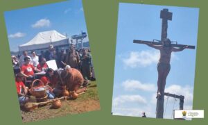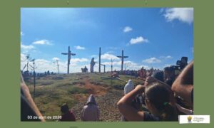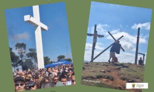 No alto do morro, os participantes acompanham a encenação da Paixão e Morte de Jesus, revivendo os últimos momentos de Cristo. Neste ano, a vivência foi marcada por profunda comoção e recolhimento. Foram momentos intensos de oração, silêncio e emoção, que tocaram o coração dos presentes.