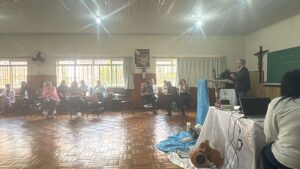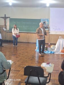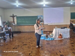 A formação acontece em formato híbrido, com etapas presenciais e encontros on-line, distribuídos entre abril de 2026 e outubro de 2027. O primeiro módulo presencial foi realizado entre os dias 10 e 12 de abril, no Centro de Formação Católica, em Lages.